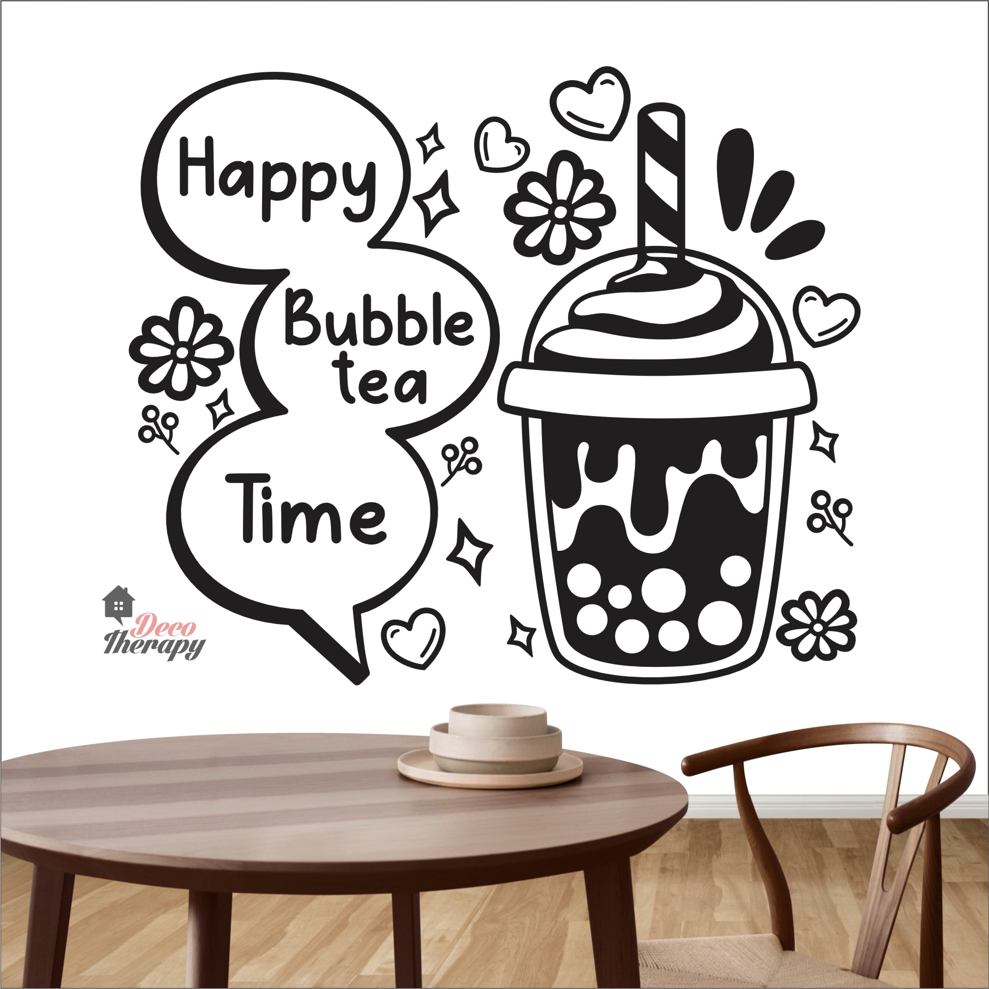 Happy Bubble Tea Time Boba Milktea Wall Decal Decotherapy